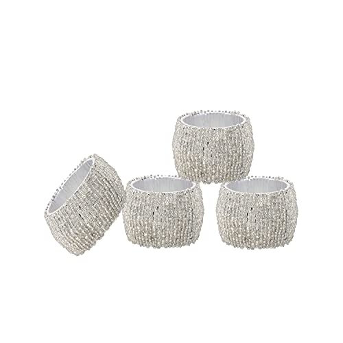 India Artistic 4 Pezzi Di Perline Di Vetro Portatovaglioli Fatti A Mano Set Decorazioni Natalizie Per Tavolo Da Pranzo (Argento)