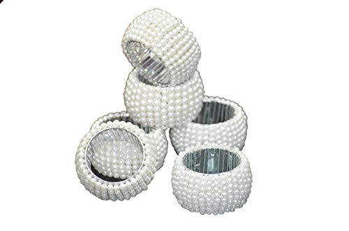 Indian Accent Set di 6 portatovaglioli decorativi fatti a mano con perline (bianco)