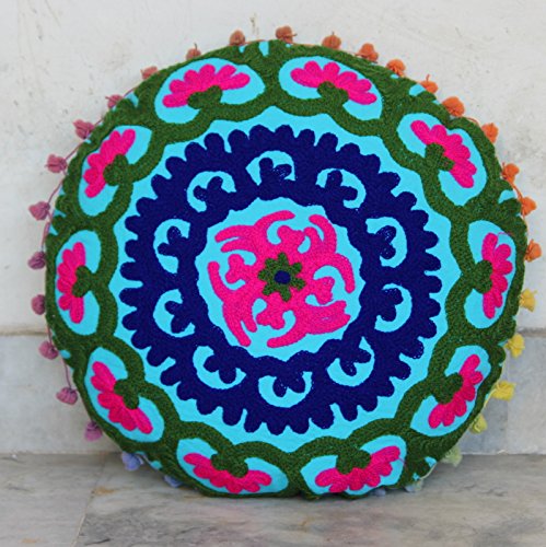 HANDICRAFTOFPINKCITY Indian Suzani Round Cushion Cover Handmade Cotton Pouffe Vintage Pillow Case Ottoman Cover