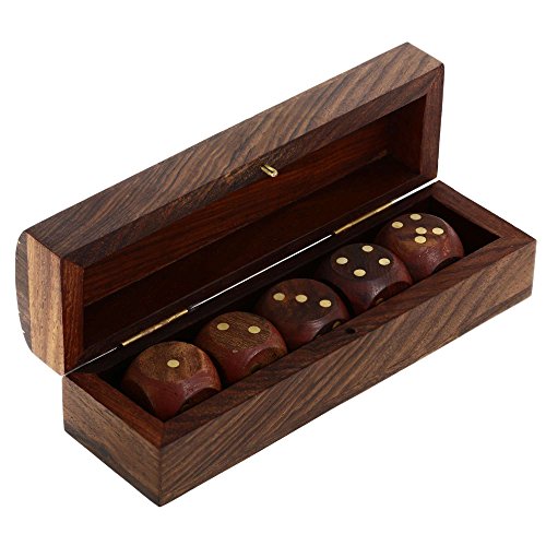 Indiani Dadi in Legno Giochi Impostati in Un'Arte di Intarsio Ottone Scatola 13.34 X 3,81 Cm