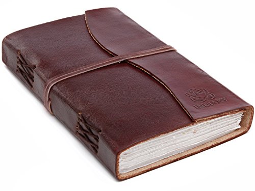 INDIARY Buffalo Leather Writing Journal With Strap Closure And Handmade Paper 23x13,5 cm - Big Circle