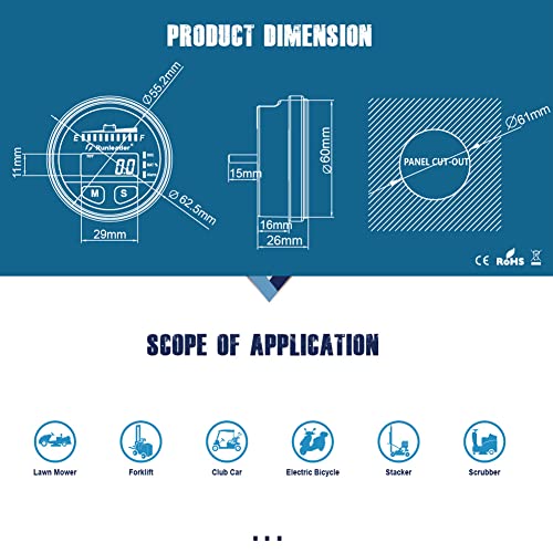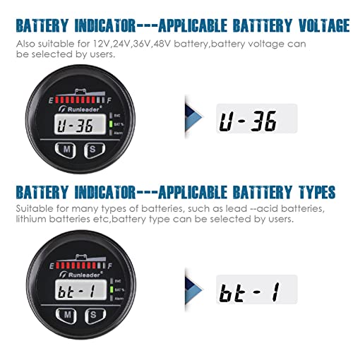 [Applicazione scena] - L'indicatore della batteria viene utilizzato per la visualizzazione della carica della batteria al piombo 12V 24V 36V 48V. Conoscere lo stato della batteria in qualsiasi momento, prestare sempre attenzione allo stato di salute della batteria, se deve essere ricaricata o sostituita, in modo da poter capire la durata della batteria in tempo per le gite o il lavoro, ed evitare imbarazzo