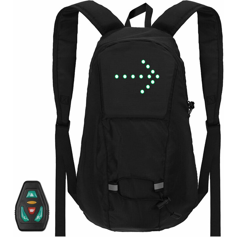 Questo zaino impermeabile da 15 litri è dotato di strisce riflettenti e luci a LED che rispondono al segnale ricevuto dal telecomando, ricordando a passeggeri e conducenti di tenersi a distanza. Batteria ricaricabile integrata da 500 mAh. Può funzionare 12-15 ore di lavoro continuo dopo 3 ore di ricarica completa. Assolutamente un complemento perfetto per il ciclismo notturno di sicurezza. Specifiche: Materiale: nylon + ;
