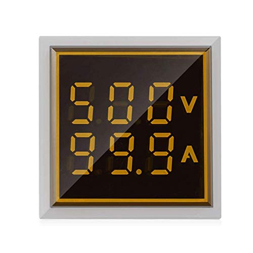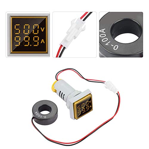 Indicatore di Tensione Digitale Amperometro Voltmetro AC 22mm, Indicatore Doppio Misuratore di Corrente Led a Doppio Display 60-500V 0-100A Display a Colori Diversi(giallo)