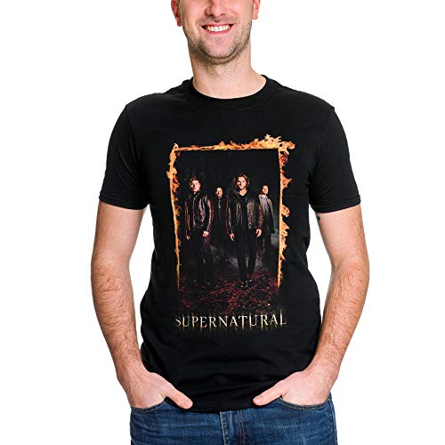 Indiego Maglietta da Uomo Supernatural Burning Gate Season Poster Cotton Black - XL