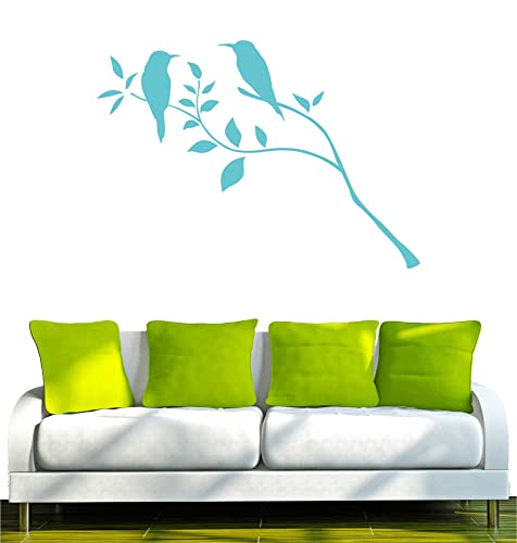 INDIGOS UG - Decalcomanie da muro - adesivi da parete - Murale - W436 Uccelli Impianto, 80 x 56 cm, Turchese - Decorazione per soggiorno, camera dei bambini, ufficio, scuola