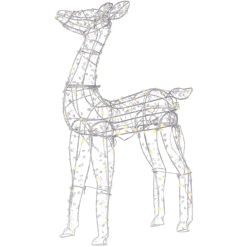 Decorazione natalizia da giardino con luci LED. Scopri l'incanto di questo capriolo a LED, un'accattivante miscela di arte e innovazione. Progettata per ambienti interni ed esterni, questa graziosa creatura illumina il tuo mondo con un tocco di meraviglia boschiva. Con il suo bagliore morbido e caldo, questa decorazione invita l'eleganza della natura nella tua casa, irradiando tranquillità e fascino. Dettagli: Tipo di prodotto: Decorazione LED Stile: Moderno Colore principale: Argento Temperatura colore LED: Bianco caldo Tipo di materiale: Metallo Materiale principale: Ferro Materiale secondario: Materiale sintetico Potenza elettrica: 3.6W Codice IP di protezione: IP 55 (Protezione da polvere e acqua) Flusso luminoso LED: 9 Lampadine richieste: 80 Voltaggio: 230 V (50 Hz) Dimensioni: Lunghezza del cavo: 500 cm Profondità: 16 cm Larghezza: 50 cm Altezza: 92 cm Peso: 1 kg L'offerta include: 1 x Decorazione Caratteristiche chiave: Perfetto come decorazione originale, Cavo lungo per la