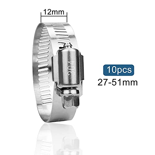 InduSKY Fascette Stringitubo Regolabile 27-51mm Gamma Acciaio Inox Fascetta Morsetto Assortimento Ingranaggi a Vite Senza Fine Fascette per Tubi Gas, Acqua, Automobilistiche 10 pezzi (27-51mm)