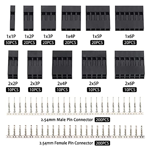 【Pratico connettori set】: Contiene perni a pin crimpare maschio / femmina da 2,54 mm, 10 diversi tipi di alloggiamento del connettore, 1PIN, 2PIN, 3PIN, 4PIN, 5PIN, 6PIN, 2 * 2PIN, 2 * 3PIN, 2 * 4PIN, 2 * 5PIN, 2 * 6PIN. Puoi scegliere il tipo appropriato in base alle tue esigenze.