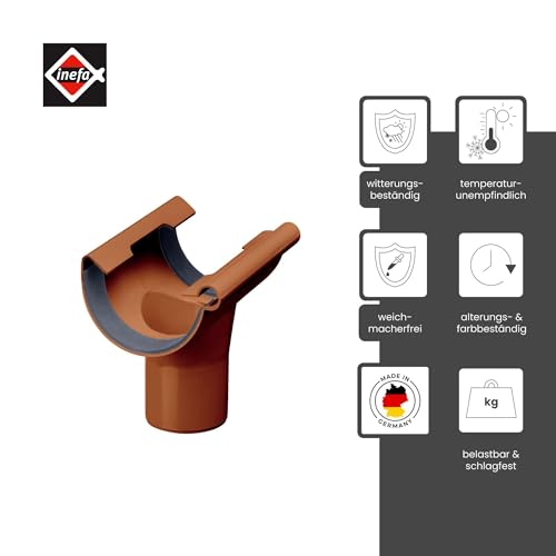 INEFA Raccordo di scarico, semicircolare in plastica PVC-U, per grondaia semicircolare, raccordo pendente, grondaia, pluviale, tubo pluviale, pluviale, scarico del tetto DN 125/85 Marrone