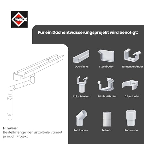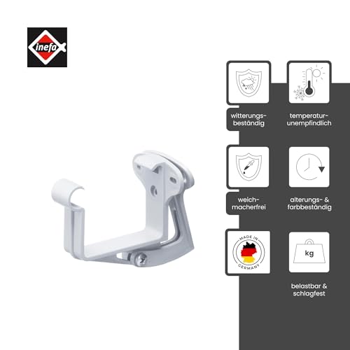INEFA Staffa per grondaia regolabile, grondaia a scatola NW 68, 1 pezzo, bianco supporto per grondaia, accessori per grondaie pvc, montaggio facile, Made in Germany
