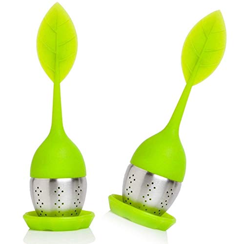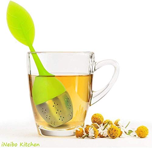 INeibo Infusore Per Tisane Silicone senza PBA Infusore Tè a Forma di Foglia Colino Per Tisane in Acciaio INOX Verde Set da2