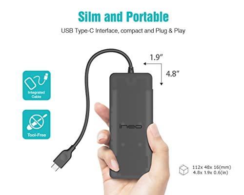 Ineo | Alloggiamento M.2 NVMe | per M.2 SSD lunghezza 2280, 2260, 2242, 2230 | USB 3.2 Gen 2 10 Gbps | Dissipatore di calore | senza attrezzi | Cavo USB-C integrato | C2575