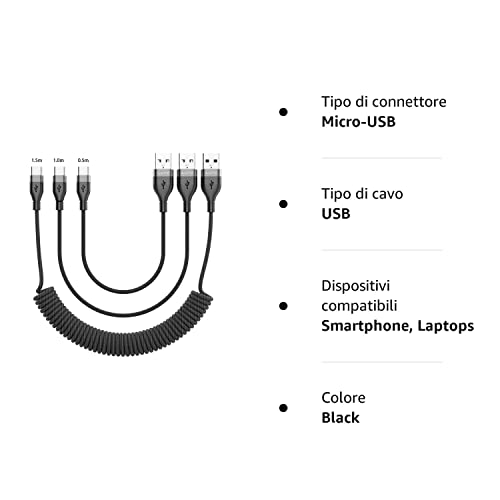 【Progettare una spirale】Il cavo USB di tipo C ha un design a forma di molla, portatile senza attorcigliarsi. Fornisce la lunghezza razionale del filo a molla (Lunghezza di trazione: da 0,5 a 1.5 m). Si allunga fino a quando si desidera.
