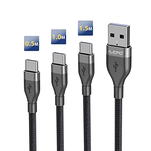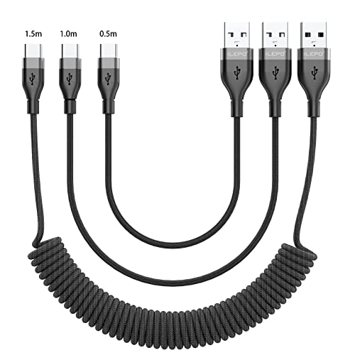INepo Cavo USB C Cavo Retrattile USB Tipo C Cavo a Spirale di Tipo C Nylon Caricatore Ricarica Rapida Sincronizzazione Dati Cavo Tipo C per Galaxy S9 S8 Note 8,Pixel, LG V30 G6,OnePlus 5(3 pezzi)