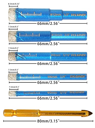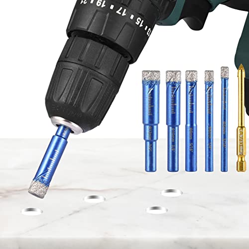 THL&INEW Set di punte diamantate, punte diamantate, punte per piastrelle, punte diamantate da 5/6/8/10/12 mm e punte in metallo duro da 6 mm, punta in ceramica molto resistente per la foratura di