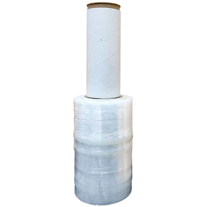 Pellicola trasparente estensibile con maniglia 23 micron h.12x150 ml.350gr completo di maniglia monouso. per filmare, legare e proteggere qualsiasi oggetto. spessore 23 micron altezza 12,5 cm rotolo da 100 mt