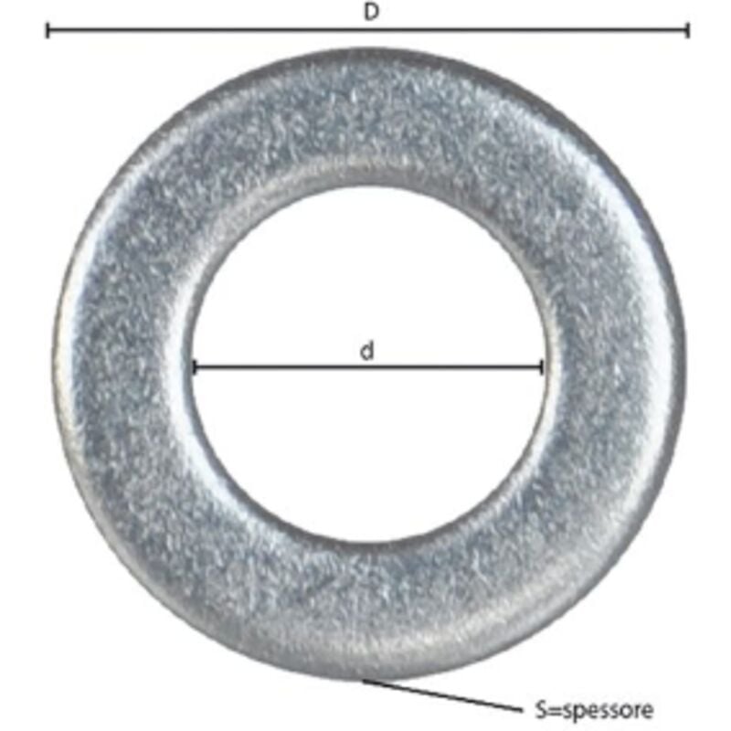 500 rondelle piane inox A2. A norme DIN 125-1, classe acciaio INOX A2-70. Dimensioni: S 2xD 20xd 10.5 mm