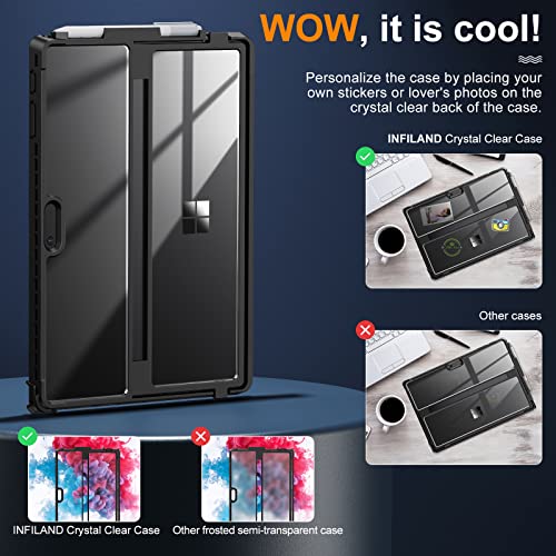 INFILAND Custodia per Microsoft Surface Pro 7 Plus/Pro 7/Pro 6/Pro 5/Pro 4 Tablet Cristallina Chiarezza Multiangolo Stand Regolabile Antiurto Custodia Protettiva Portatile Robusta con Portapenne, Nero