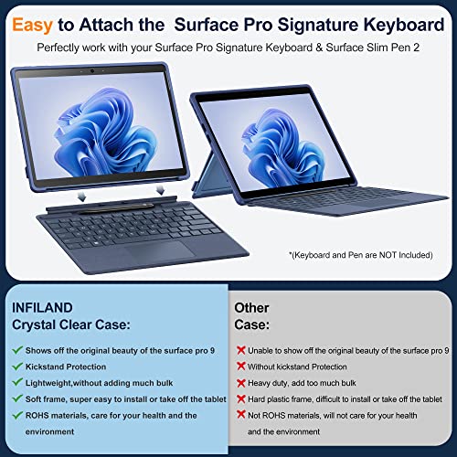 INFILAND Custodia per Surface Pro 9, trasparente, multi-angolo, antiurto, compatibile con Microsoft Surface Pro 9 (2022), funziona con Surface Pro Signature Keyboard e Surface Slim Pen 2, blu pietra