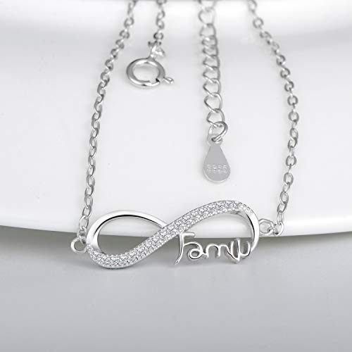 INFINIONLY Bracciale in argento sterling 925, Bracciali da donna, simbolo di infinito ed elemento "Family", zircone intarsiato, argento, Regali di compleanno e Natale