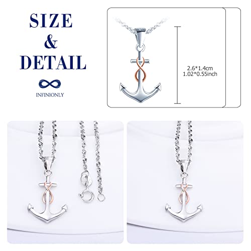 INFINIONLY Collana ancora da donna e ragazza, Collana in argento 925, Collana Ciondolo ancora in argento intarsiato con simbolo infinito in oro rosa, Processo di galvanica bicolore unico