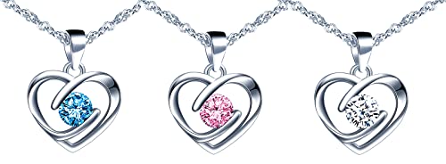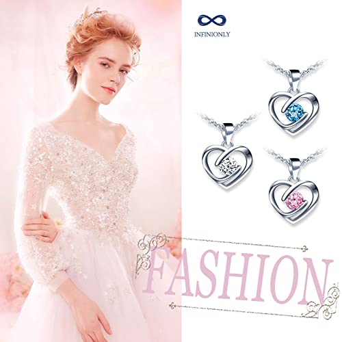 INFINIONLY Collana cuore da donna ragazza, Collana in argento 925, Collana cuore diamanti, Ciondolo con zirconi lucidi, Processo di taglio perfetto, 45cm Catena, tre pezzi