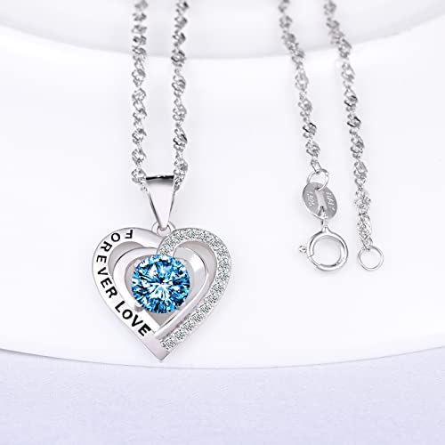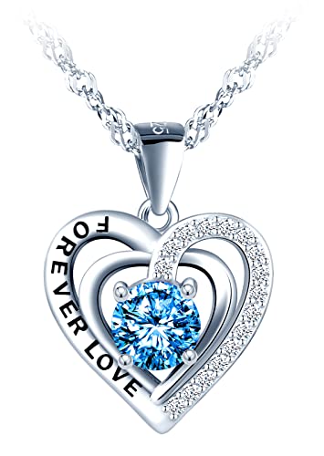 INFINIONLY Collana cuore da donna e ragazza, Collana in argento 925, Collana Ciondolo cuore con zircone lucido, Incisione "FOREVER LOVE", Con catena da 45cm, gioielli eleganti, azzurro