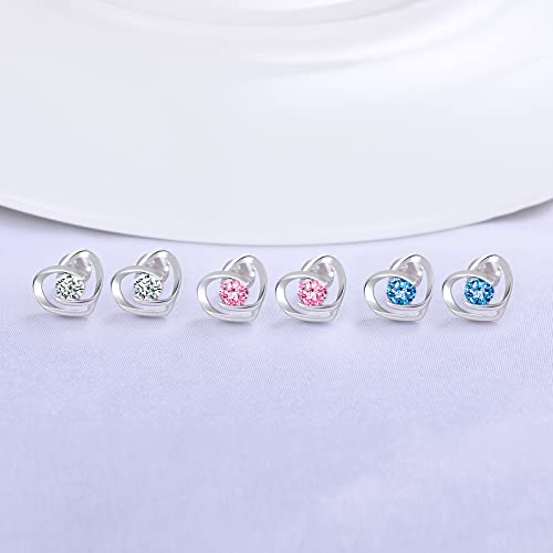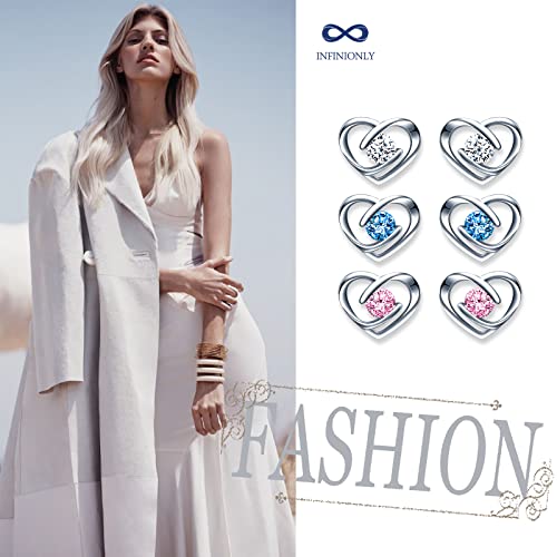 INFINIONLY Orecchini Cuore da donna ragazza, Orecchini in argento 925, Orecchini cuore diamanti, Eleganti orecchini con zircone lucidi, Processo di taglio perfetto, Tre paia