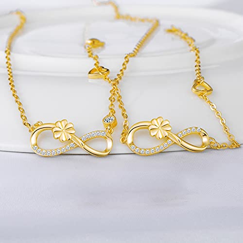 INFINIONLY Parure di gioielli, Collana Bracciale da donna ragazza, Collana Bracciale in argento 925, bracciale collana ciondolo con simbolo dell'infinito e trifoglio fortunato, zircone intarsiato