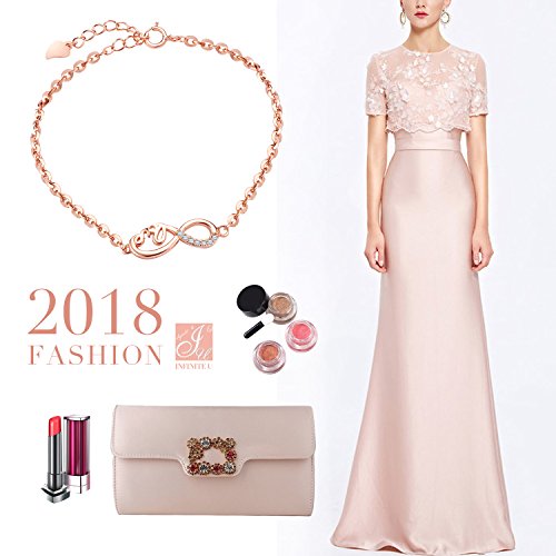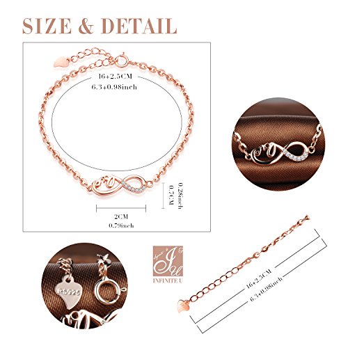 Infinite U - Bracciale da donna con simbolo dell'infinito e simbolo dell'infinito in argento Sterling 925, con zirconi cubici, catenina regolabile in oro rosa