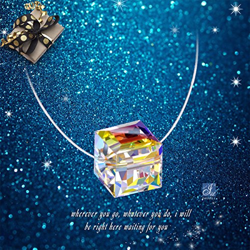 Infinite U - Collana con ciondolo a forma di cubo in argento Sterling 925 con cristalli solitari invisibili in nylon, per donne e ragazze, colore: argento