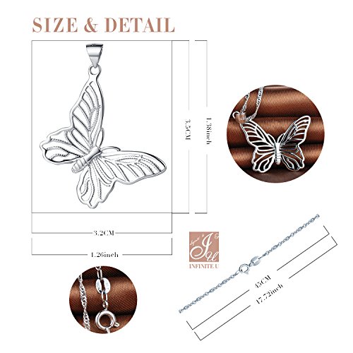 Infinite U - Collana da donna in argento Sterling 925, con ciondolo a forma di farfalla, lunghezza 45 cm