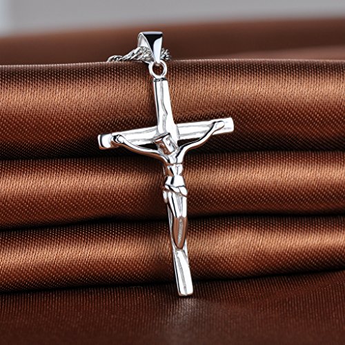 Infinite U, collana con esclusivo ciondolo a forma di crocifisso, in argento Sterling 925, da uomo e da donna, ciondolo per coppia, pendente, croce, crocifissione, Gesù e argento, colore: Silver-Couple, cod. N1610-couple