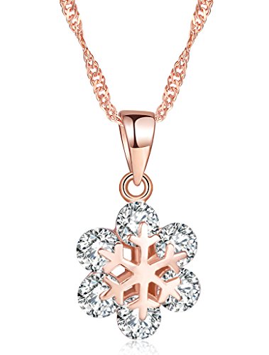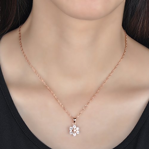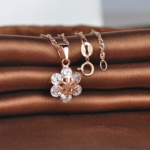 Infinite U, elegante collana da donna con fiocco di neve, in argento sterling 925 rodiato, con ciondolo di zircone cubico a forma di fiore, colore oro rosa