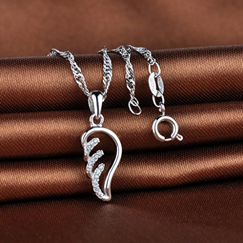 Infinite U Fashion - Collana da donna in argento Sterling 925 con ciondolo a forma di ala di angelo, con zirconia cubica, catenina da 45 cm