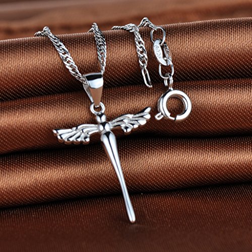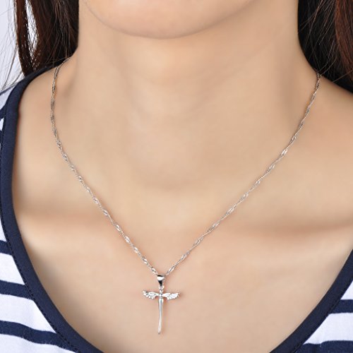 Infinite U moda ali d' angelo in argento Sterling 925 ciondolo a forma di croce con 45,7 cm catena per donna/ragazza, colore: Argento