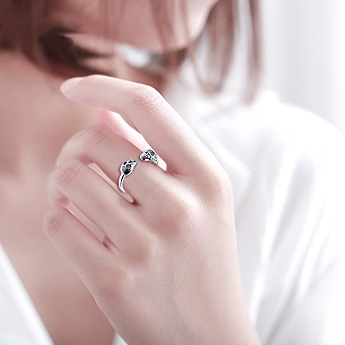 Infinite U Unique Double Skulls - Anello aperto in argento Sterling 925 con zirconi cubici, misura regolabile L-P, Argento, Zirconia cubica