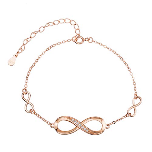 Infinito simbolo infinito oro rosa bracciale da donna in argento sterling 925 bracciale da donna in oro rosa con zirconi argento per donna donna ragazze, braccialetti regalo