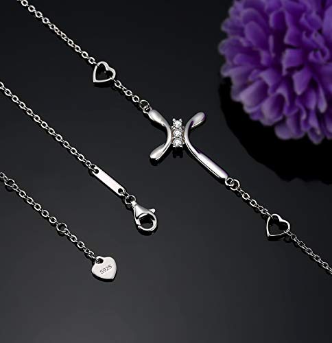 ❤Alta qualità❤: bracciale religioso da donna in argento Sterling 925. Questo gioiello in argento Sterling è impreziosito da una bella croce con zirconia cubica e da due cuori nella catena. Il simbolo della croce è decorato con scintillante zirconia cubica di colore bianco che lo rende veramente speciale. È stata utilizzata una raffinata tecnica di lucidatura.