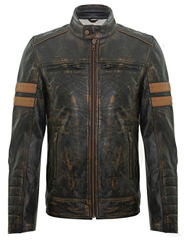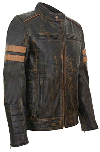 Infinity Leather Giacca Vintage da Uomo Trapuntata a Righe in Pelle Marrone Casual Stile Motociclista L