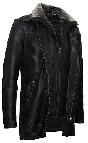 Infinity Leather Soprabito Classico Uomo di Pelle Nera in Media Lunghezza con Collo Rimovibile XL