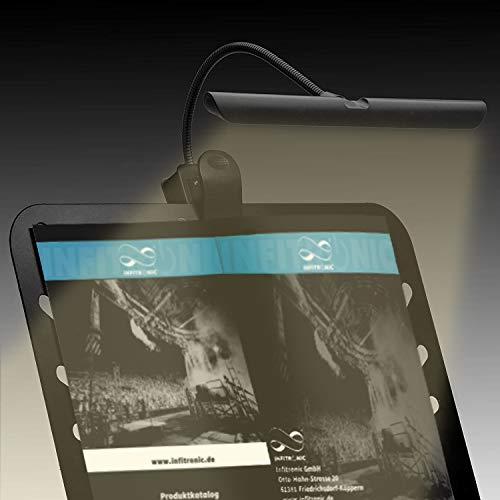 Infitronic IN18LEDNLR - Lampada da lettura a 18 LED, ricaricabile, per leggio, con 2 modalità di colore nero