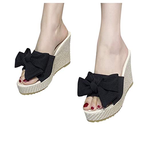 Infradito Donna con Tacco Scarpe Pantofole dei Sandali con Zeppa dell'Arco della Bocca del Pesce di Colore Solido di Modo di Estate All'Aperto Ciabatte Donna Estive (Nero, Numeric_38)