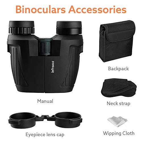 Infreecs Binocolo Professionale, Mini Binocolo Compatto Binoculare Telescopio 10x25 con Sacchetto di Trasporto, Cinghia e Panno per il Bird Watching da viaggio e caccia,Sport stadio,Concerti