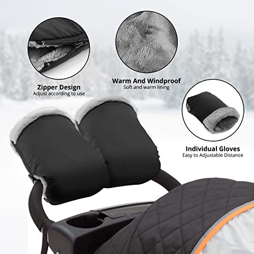 Infreecs Gants de Poussette, Poussette bebe Gants Doux Chaud Coupe-Vent et Imperméable Gant Poussette Protège-Mains Hiver Poussette Gants pour Poussette Landau Vélo Fauteuil Roulant Poignée - Zip