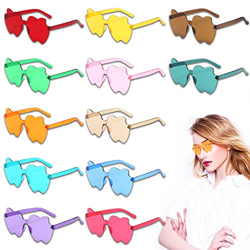 Infreecs 12 Occhiali da Sole Trasparenti Candy Color Uv400, Occhiali da Sole per Feste all'aperto, Occhiali Colorati Hippie, a Forma di Mela, per Feste, Gite all'aperto, spettacoli sul palcoscenico