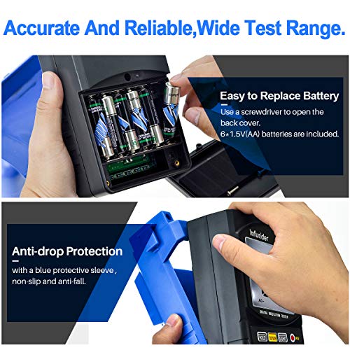 ✈【Doppia Protezione】Protezione da sovraccarico IEC 61010-1 e CATIV 600V / CATIII 1000V in tutte le gamme, design del circuito anti-alta tensione. Viene fornito con una copertura protettiva blu anti-caduta e antiurto, che protegge efficacemente l'esterno dello strumento e previene i danni causati dalla caduta.
