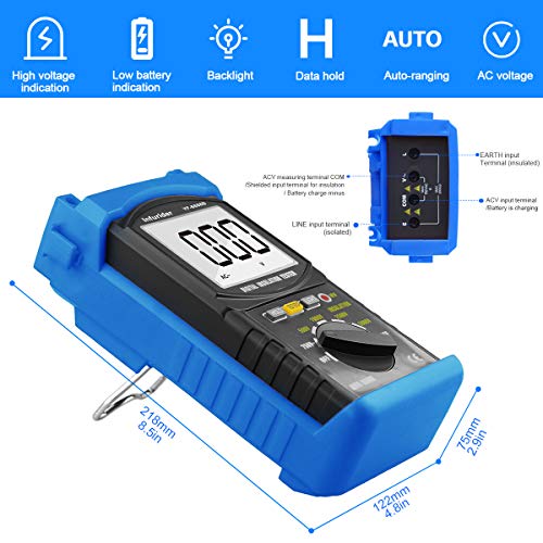 INFURIDER YF-6688B Tester Digitale di Resistenza di Isolamento Voltmetro CA CC, Tensione di Prova 5000V, Resistenza di Isolamento 200 GOhm, Retroilluminazione LCD e Indicatore di Alta Tensione