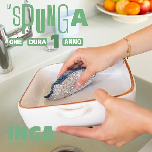 INGA - 2 X Spugne Lavabili Riutilizzabili - Altamente Efficaci, non Graffiano - Made in Europe - Aggiornamento a Spugne Lavabili che Durano 1 Anno